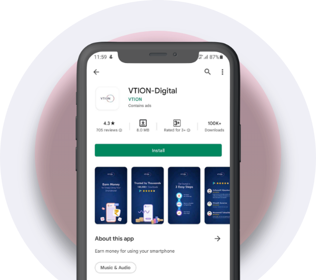 Excellent app I got money after successful registration and Weekly I got money from VTION DIGITAL It is very good and gives you earnings By just keeping it on our mobile aside and By used to see multimedia.